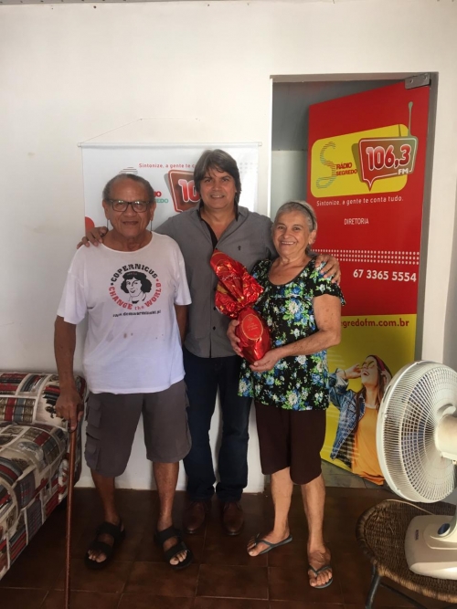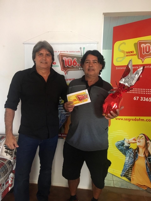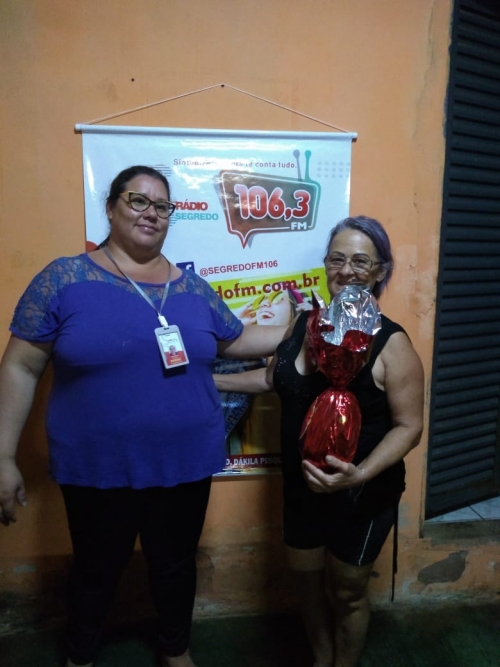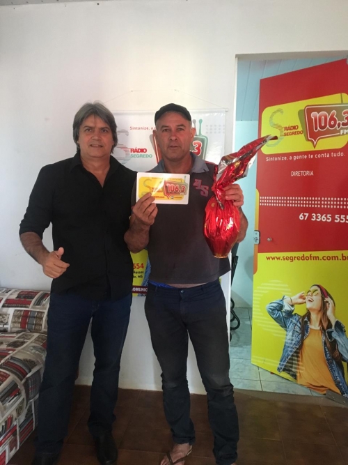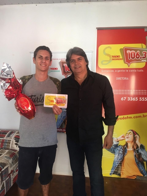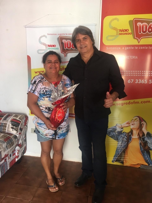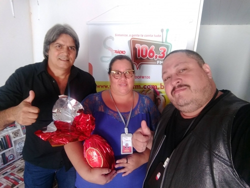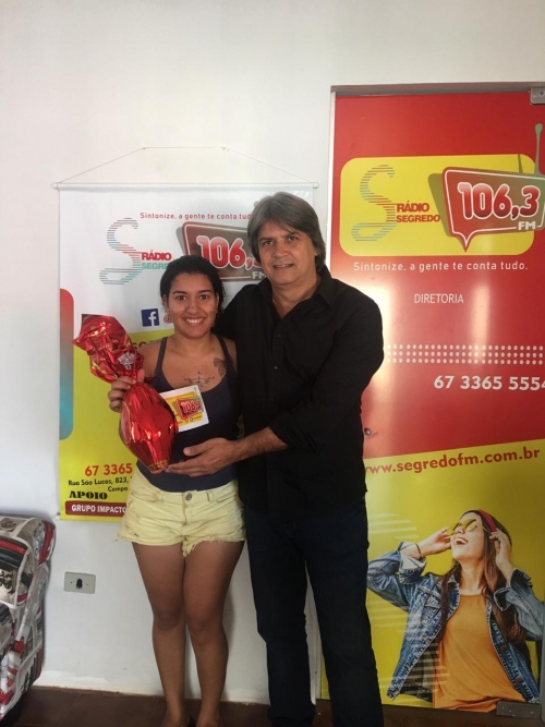 A promoção de Páscoa da nova segredo FM foi um sucesso, tivemos mais de 1,500 participantes. O sorteio foi realizado dia 17 de abril e foram sorteados 20 ovos de Páscoa de 500g. durante o sorteio aqui no estúdio da segredo FM o nosso patrocinador Urandir Fernandes de Oliveira, presidente da Dakila Pesquisas, sorteou um kit da kion Cosméticos e, também, doou 5 ovos para a instituição Amar e Servir. Esses foram os ganhadores sortudos: